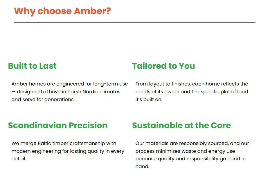 Amber Constructions shares our dedication to craftsmanship, sustainability, and client satisfaction. Based in the Baltics with over 15 years of expertise, they've built more than 60,000 m² of stunning timber-frame homes across Europe, from Stockholm to the Netherlands to Iceland.