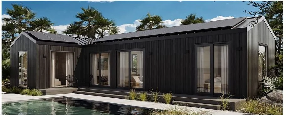 The full complete model you choose, solid wood cabinets with soft close hinges, quartz countertop and backsplashes, brushed nickel finishes and Bosch and LG appliances. Mini split for heating and cooling. Also includes a stamped site plan for permit application which your GC or installer will greatly appreciate.